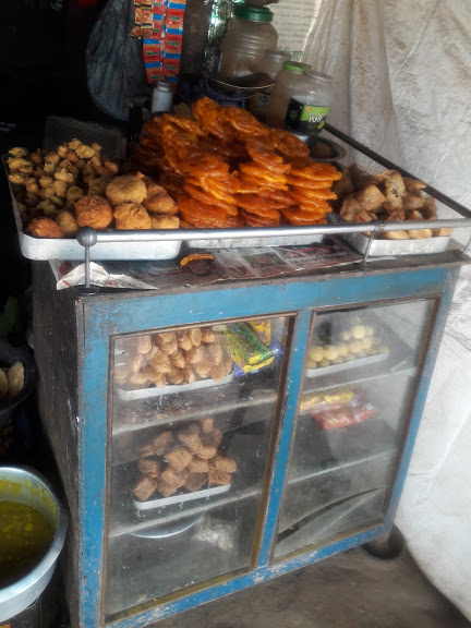 where he was frying alu chops and other fritters while his wife made the tea